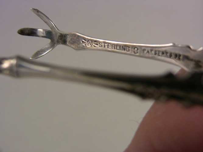 Antique Tableware Sterling Silver Sugar Tongs 3-Claw Acanthus Leaf Pat'd 1892 8g