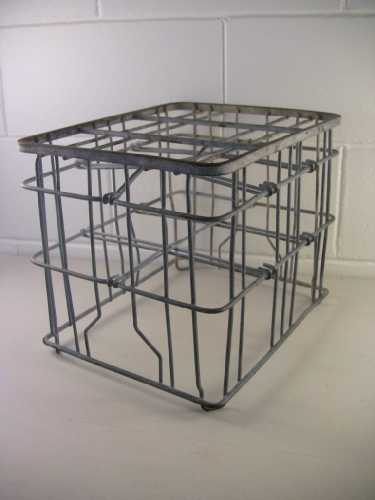 Vintage galvanized metal wire milk bottle dairy crate