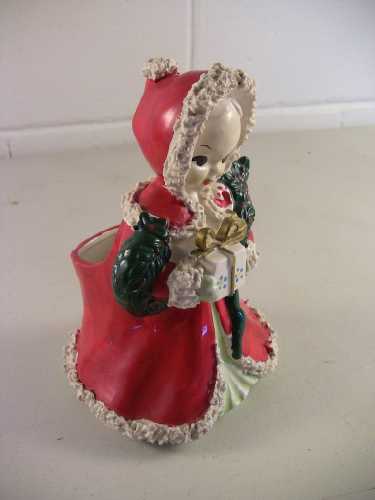 Vintage hand-painted ceramic Christmas girl planter