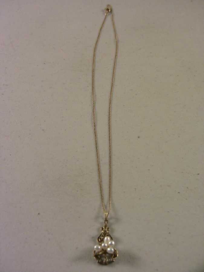 Vintage Faux Pearl Pendant Necklace 18" Atlas 12K GF Gold Roses Faux Pearls Filigree Pendant Chain Necklace