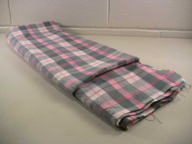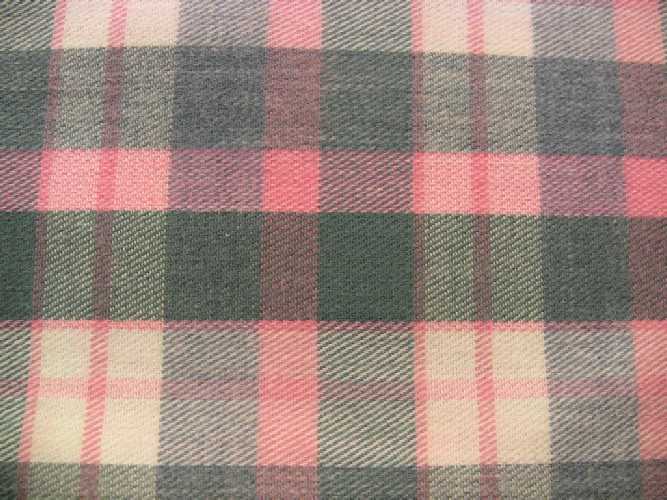 Pink, green, and white plaid cotton twill