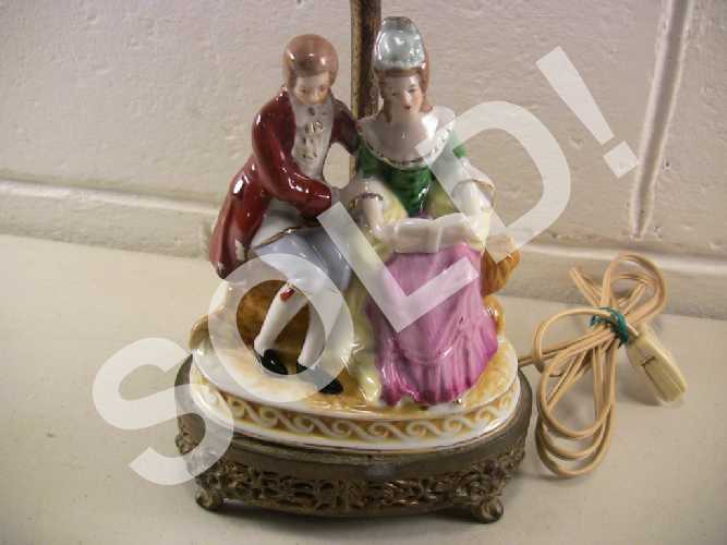 Vintage Porcelain Table Lamp Shabby Figural Boudoir Light Couple Reading
