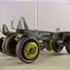 Totally collapsed the skates measure 8-1/2" long by 3" wide by 3" tall