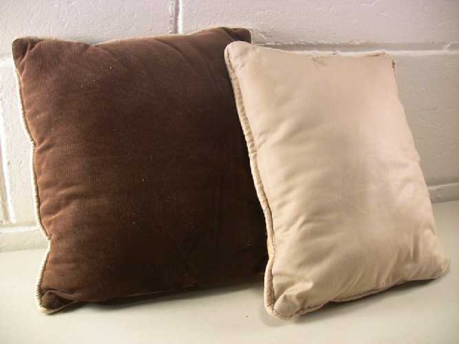 Tan pillow measures approximately 12" long by 9-1/2" wide