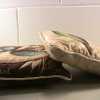 Handsome throw pillows in earthy tones of tan, brown, green, blue, and gray