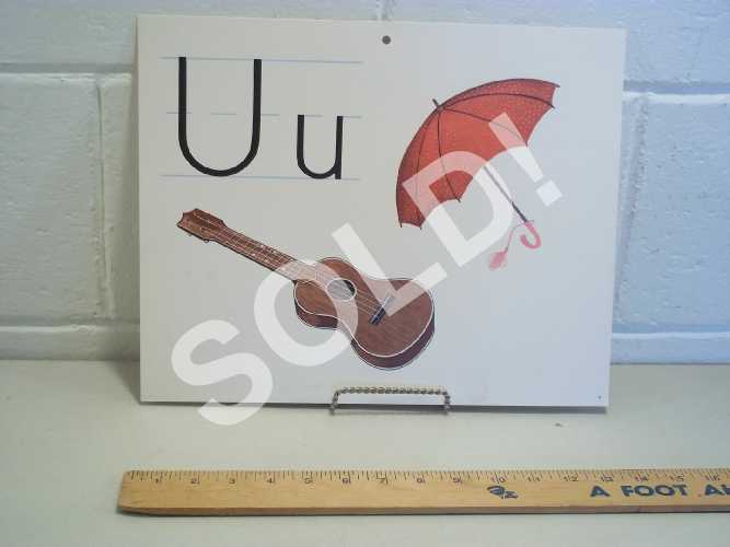 This listing is for letter card 'Uu--Umbrella, Ukulele'.