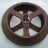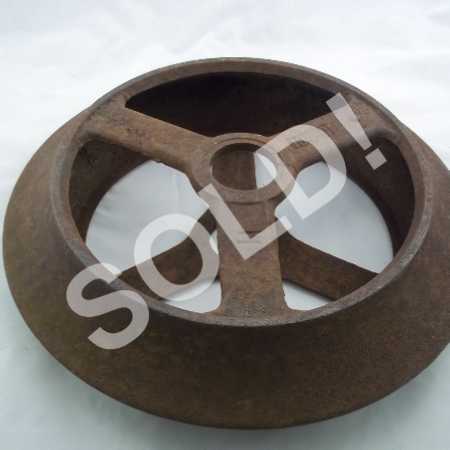 Good vintage condition with rust and cracks.  Completely covered in rust throughout.  One "spoke" has two cracks right through to other side near center hole, as shown in pics; selling AS IS with cracks, and price reduced accordingly.  Still sturdy and intact despite cracks.  Selling as salvage art for display only.
