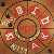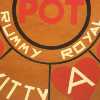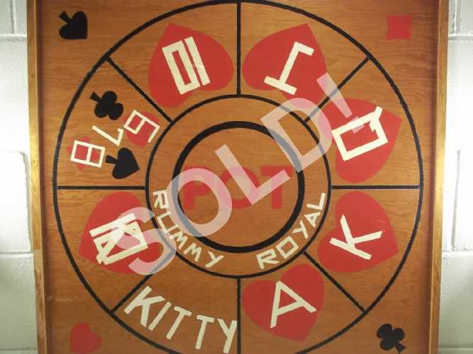 All four card suits represented within black sectioned circle, POT in center, RUMMY ROYAL, and KITTY
