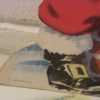 1 Santa in chimney:  large bend and fray in right lower corner; easel back partially missing and flimsy