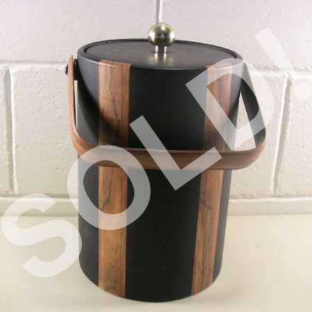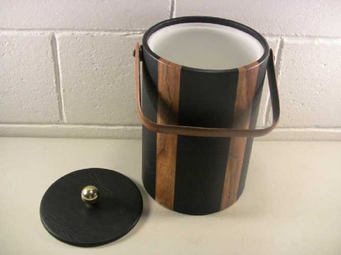Vintage Ice Bucket Vintage Barware Mid Century Barware Insulated Black Woodgrain