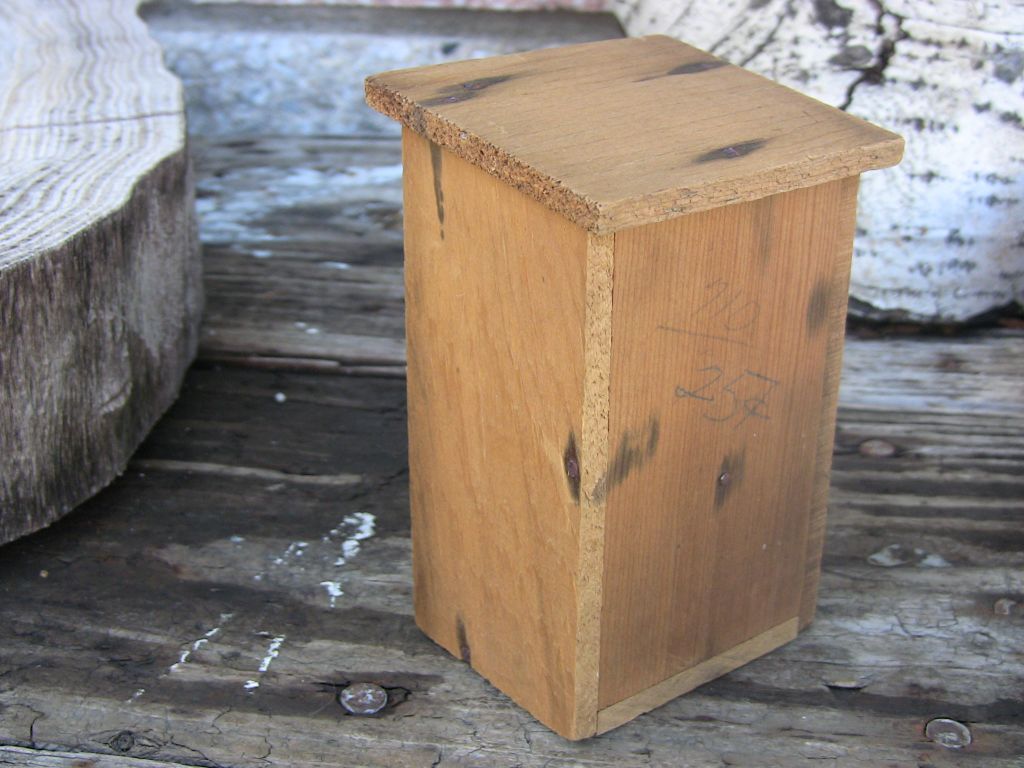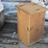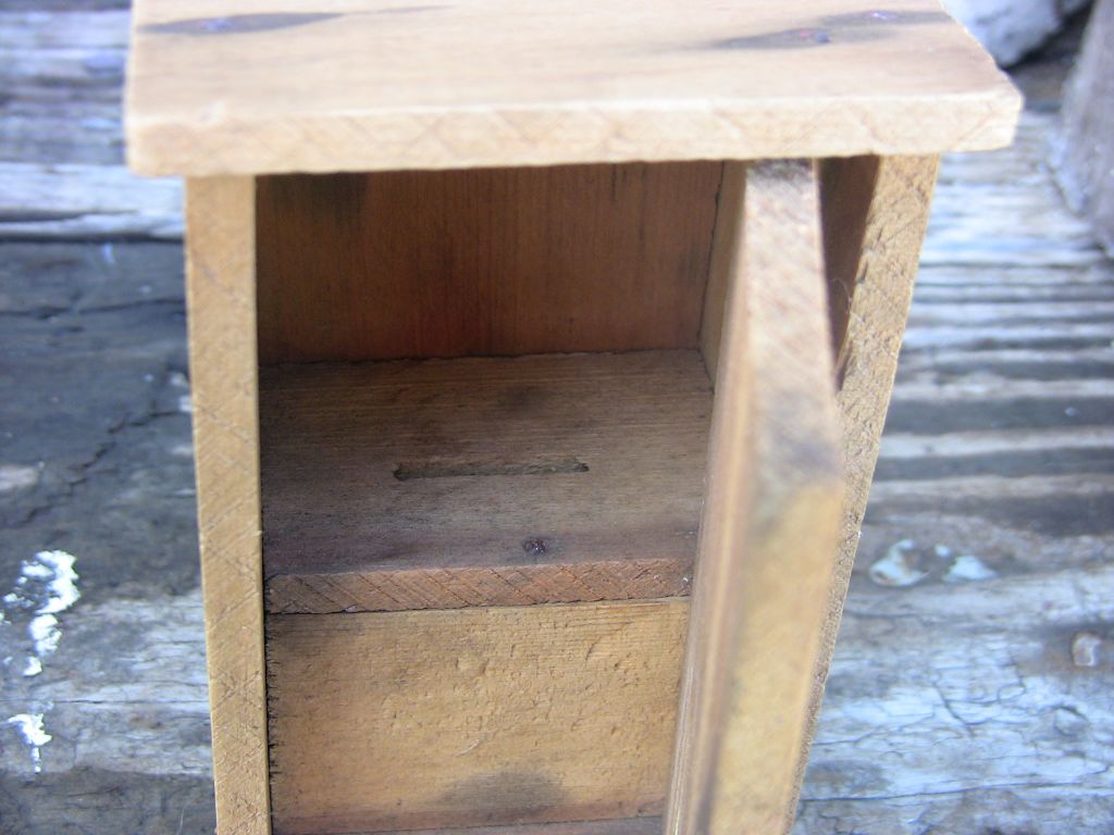 Wooden outhouse bank measures 4.75" high x 2.75" wide x 2.75" deep