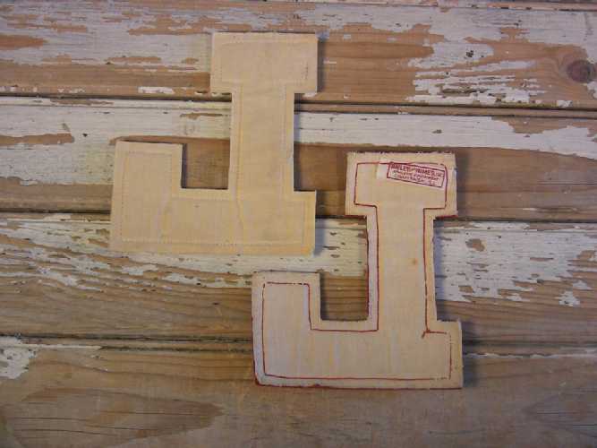 Vintage letterman patches in very good to excellent condition with light soiling. One patch (white on red) has evidence of previous stitching holes.