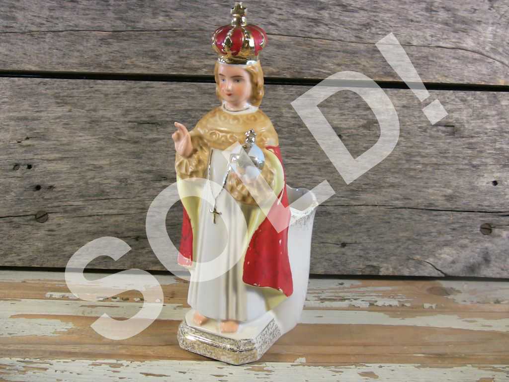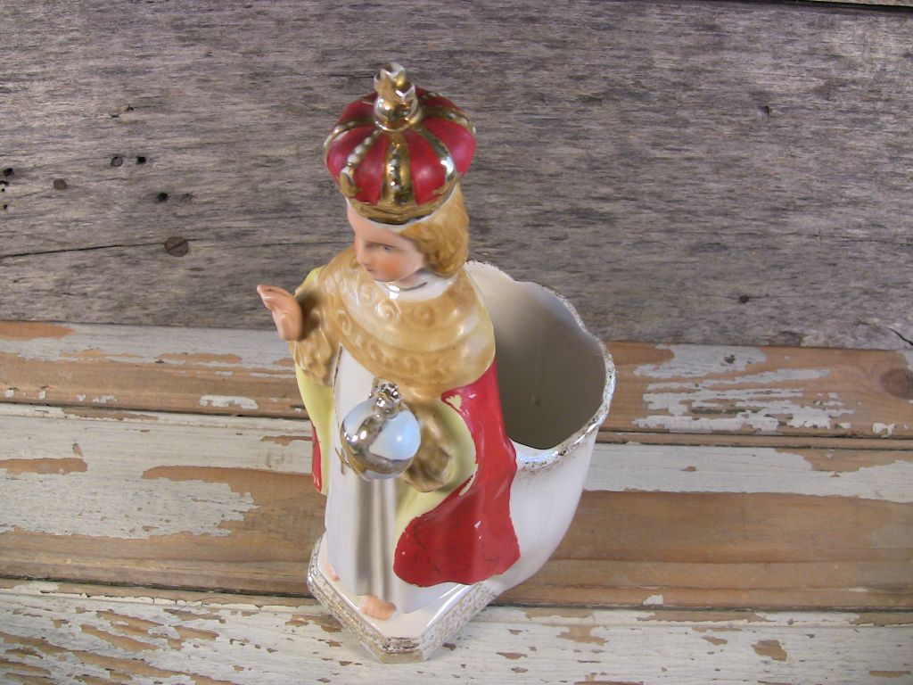 Vintage Religious Figurine Infant of Prague Ceramic Planter Pencil Cup Gilt Trim