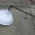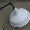 Used industrial light in very good condition with wear from age and use. Metal shade in good condition with some speckles of surface rust here and there; a few nicks, scrapes, dents and dings, rim slightly out of round. White powder-coat finish is in very good condition, interior and exterior, with light wear and tear. This light was salvaged from a flea market demolition and being sold in AS FOUND condition, except for cleaning. Wiring should be inspected for safety by a professional before use; may need to be rewired. Black painted iron poles show some medium surface wear and rust throughout.