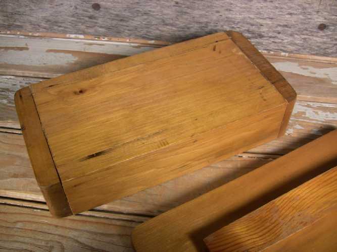 Constructed of 3/4" solid cedar wood; crudely made, may be student wood shop piece; finished in simple varnish coat