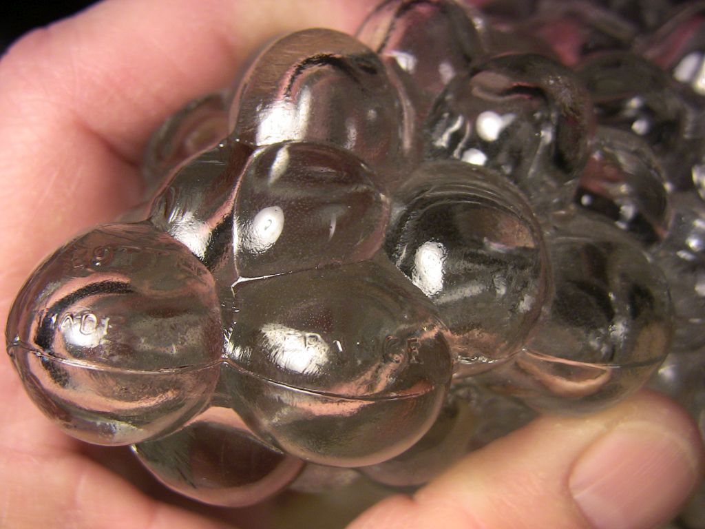 Clear glass grape cluster wine bottles with bakelite screw-on caps