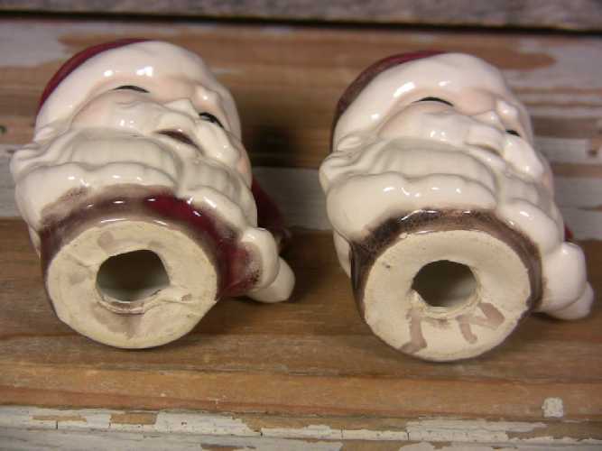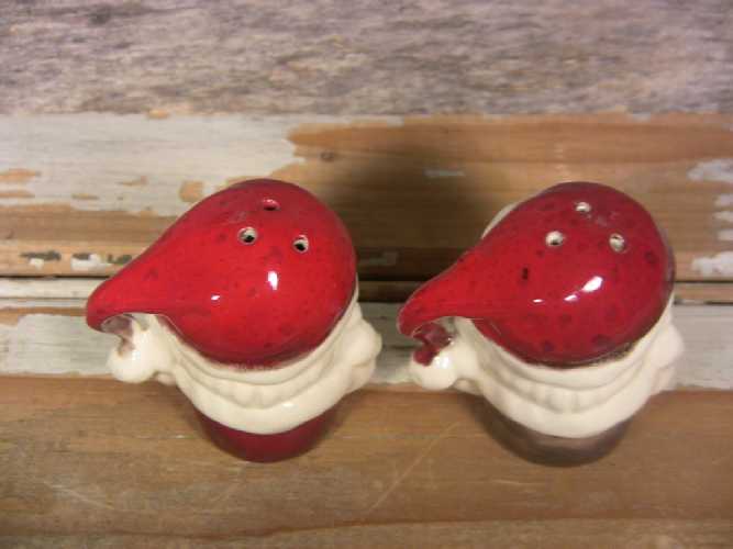 Vintage home-crafted and painted ceramic Santa Claus shakers