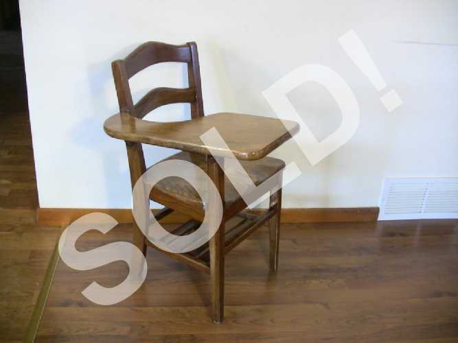 Vintage school house desk chair in very good condition with appropriate wear from age and classroom use. There are approx 25 desk chairs available. These came from a local church sale, and were used in the catechism classroom. All desk chairs are in very good to excellent condition, both cosmetically and physically, and are very suitable for display and use. Chairs are constructed of solid oak wood and cast metal hardware, and are very sturdy. All chairs have been refinished at some point by church volunteers and are in very good cosmetic condition. Finish wear, nicks, scratches, and slight separations are present in most or all chairs. Being classroom stock, these desk chairs may have writing, scratches, marks, gum stuck on the undersides, etc., but as stated, have all been re-coated with polyurethane or varnish at some point in time, and are in very good shape.
