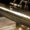 Made of brass and other metals, antiqued brass finish