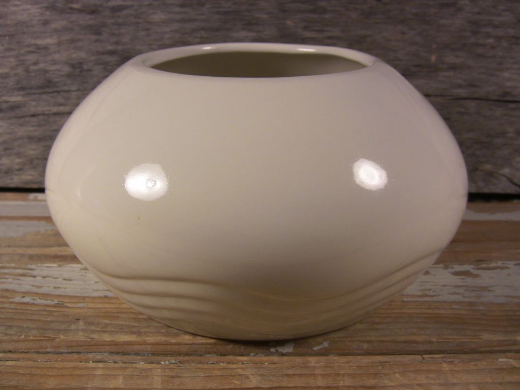 Beautiful squatty mid century off-white art pottery vase is crisp, clean, and modern, like the 1970s; beautiful for use and display.