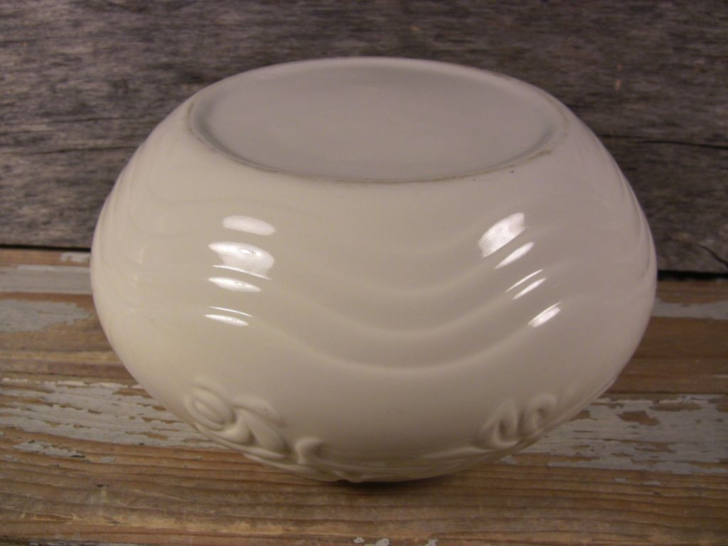 Vintage Mid Century Modern Pottery Vase White Ironstone Bowl Flowers & Waves 70s