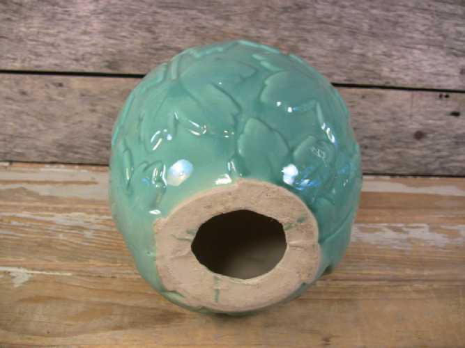 Vintage Art Deco Pottery Ceramic Urn Table Lamp Base Green Leaves 1940s Bungalow