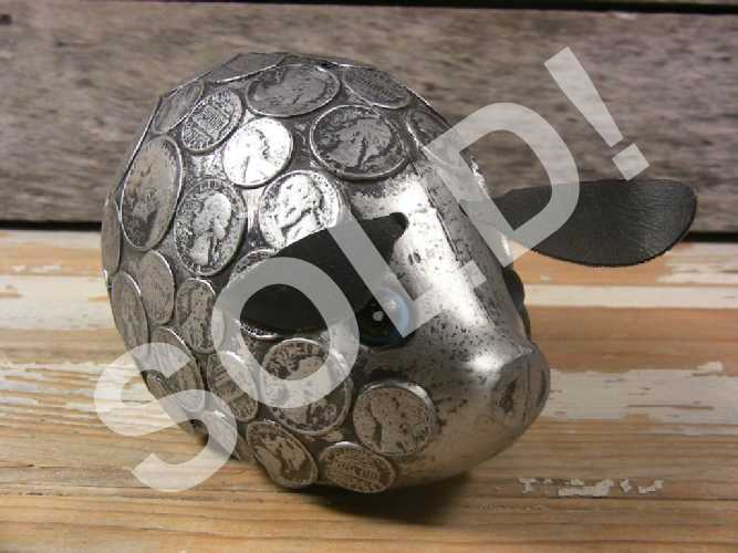 Vintage Novelty Piggy Bank Silver Plastic US Coin-Decorated Pig 1970s