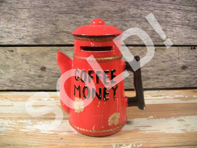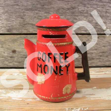 Vintage Novelty Coin Bank Coffee Money Red Ceramic Coffee Pot 1950s-1960s