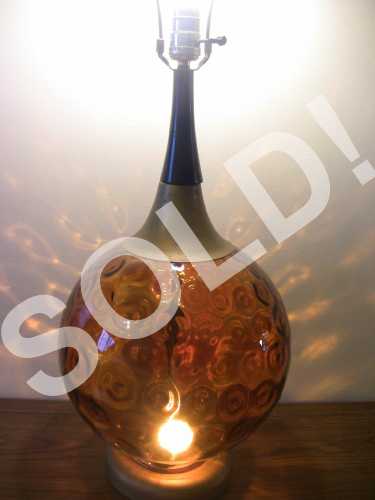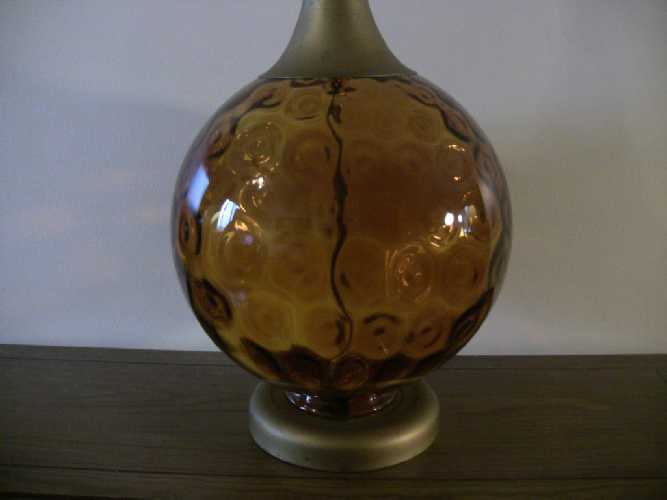 Vintage Mid Century Modern Moon Orb Table Lamp Optic Amber Glass 3-Way Light 60s...