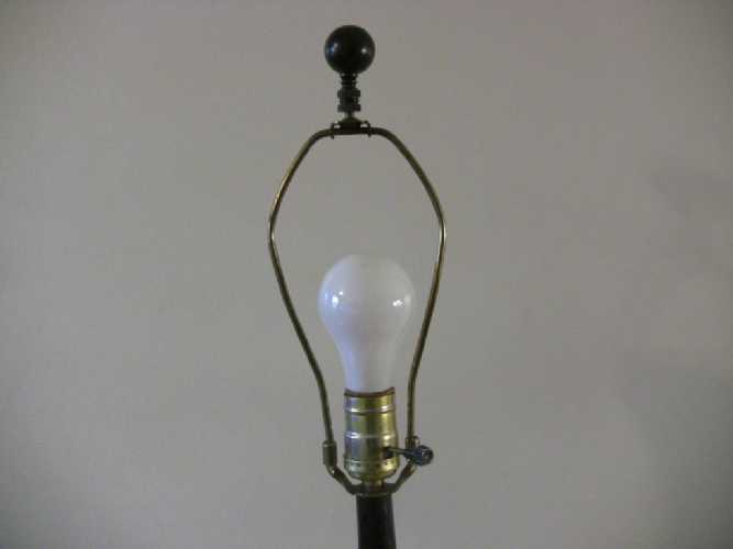Lamp measures 31 in. high to top of finial, 22.5 in high to top of socket, 11-inch diameter orb base...