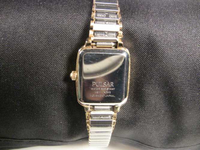 Stamped on back:  Pulsar, Water Resistant, V811-XO55, Movement Japan