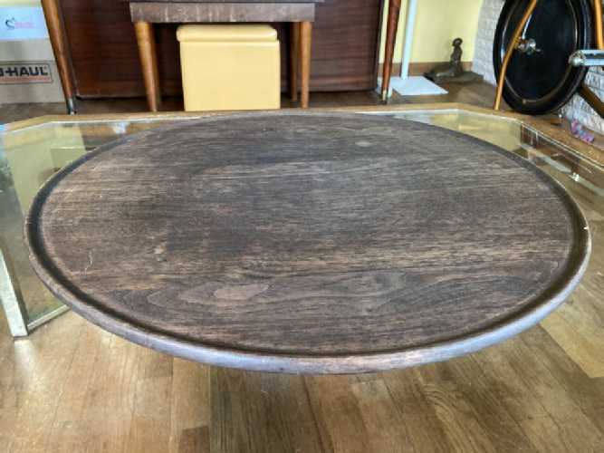 - Large Vintage Wooden Tabletop Lazy Susan Black Walnut Turntable Farmhouse Decor