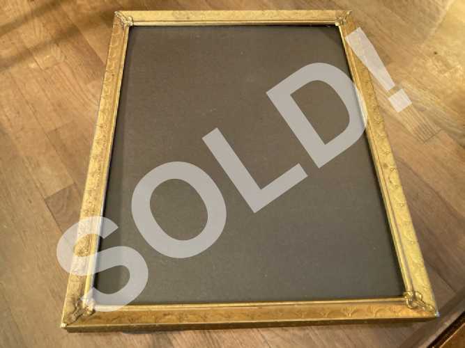 Vintage decorative brass picture frame in good condition with light wear and patina. Golden brass finish has light wear, oxidation, and patina. Glass good condition. Cardboard insert and easel have water stain half way up, with light wear. Cardboard easel has slight crease across lower portion and a bit loose, but still sturdy. Lovely simple decorative brass frame dates to the 1970s.