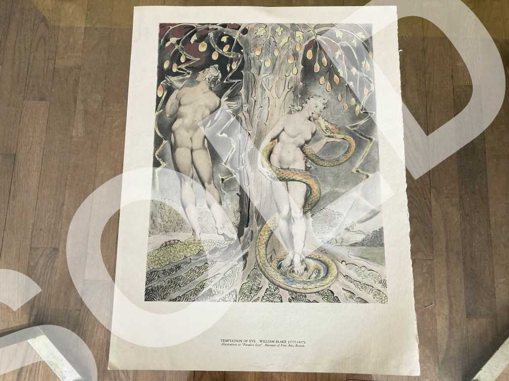 - Vintage William Blake Print Temptation Of Eve Paradise Lost Illustr 1947 MFA Boston 4-5