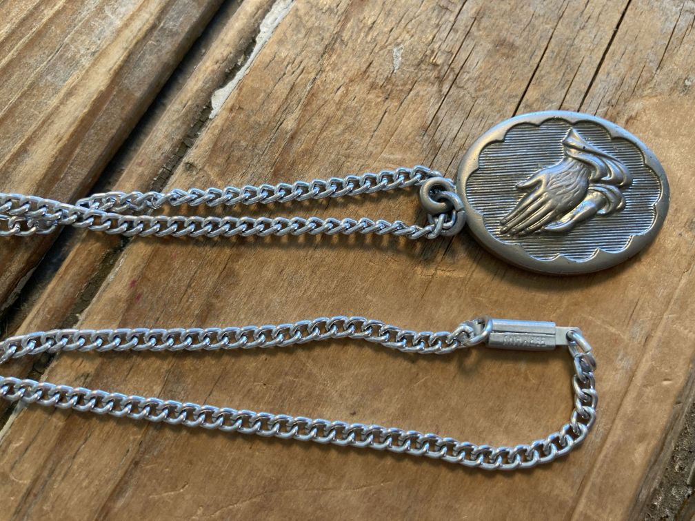 - Heavy silver metal necklace pendant, may be silver-coated brass–slightly magnetic