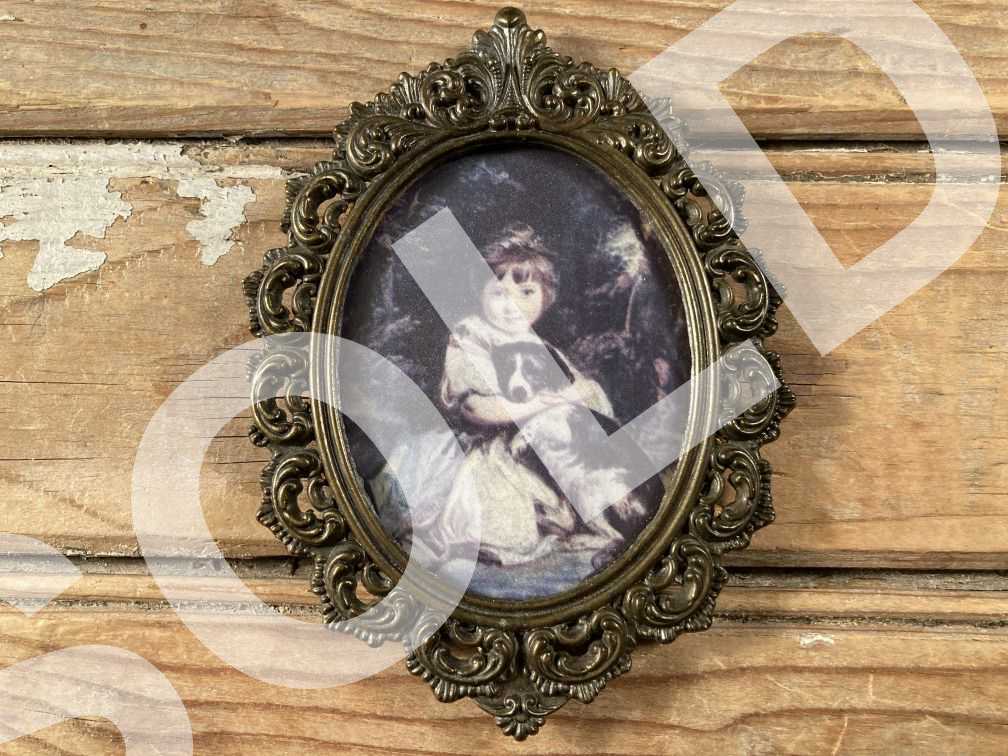 - Vintage Miniature Art Print Decorative Metal Frame Italy 1960s 2of8 Girl and Dog Portrait