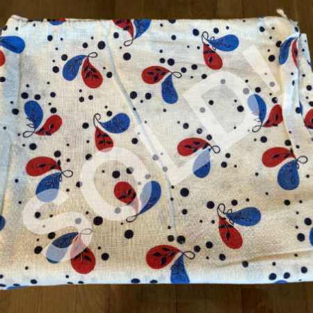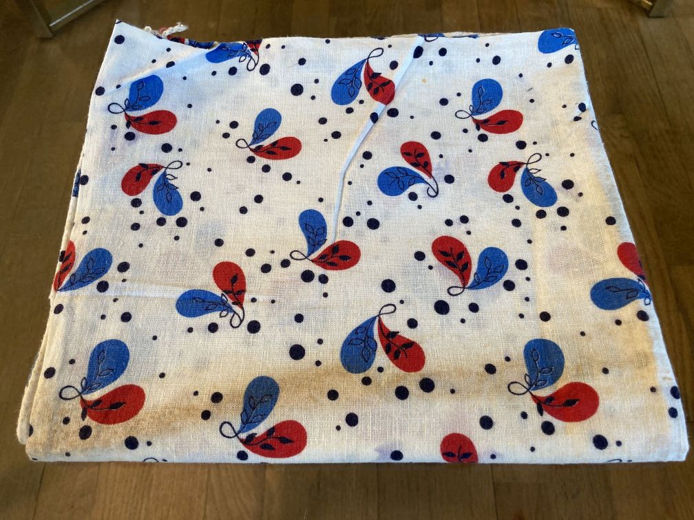 - Vintage Cotton Feedsack Fabric Red Blue Stylized Leaves on White Whole Sack 1920s-1950s Sewing Material