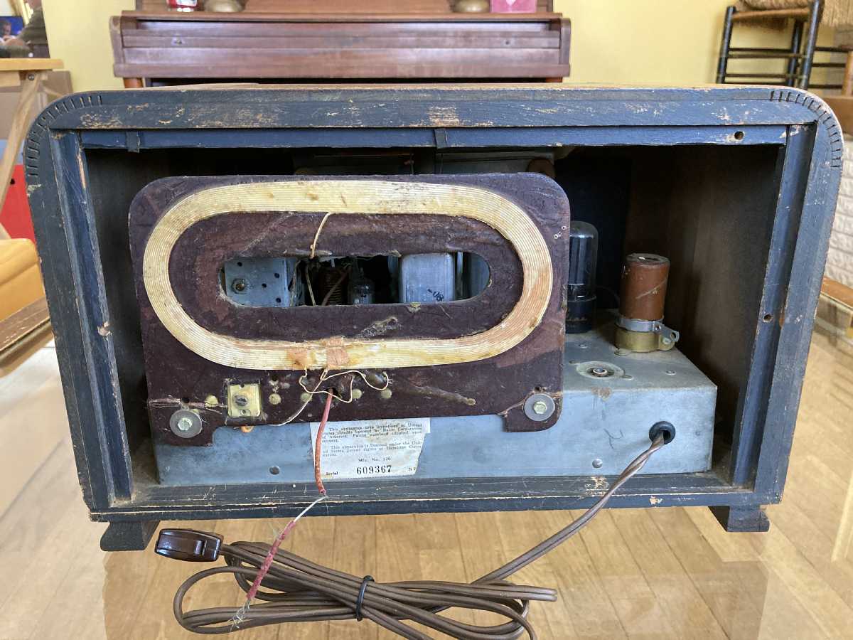 - Original label on back, partially missing–Mfg. No. 320, Serial No. 609367, Hazeltine Corporation patent