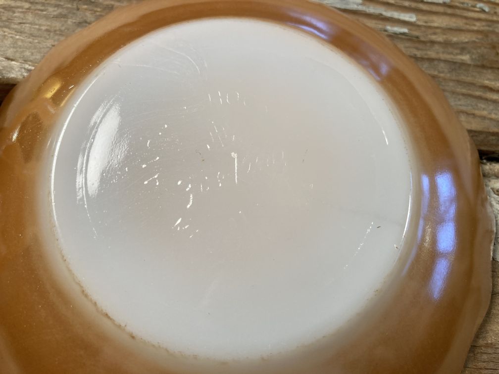 Vintage Fire King Peach Luster Swirl demitasse cup and saucer in good condition with light wear. Some faint roughness here and there on the saucer edge. Light surface wear. No chips or cracks.