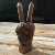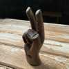 Vintage Miniature Carved Peace Sign Hand Fingers 1970s Iconic Wood Sculpture 6"