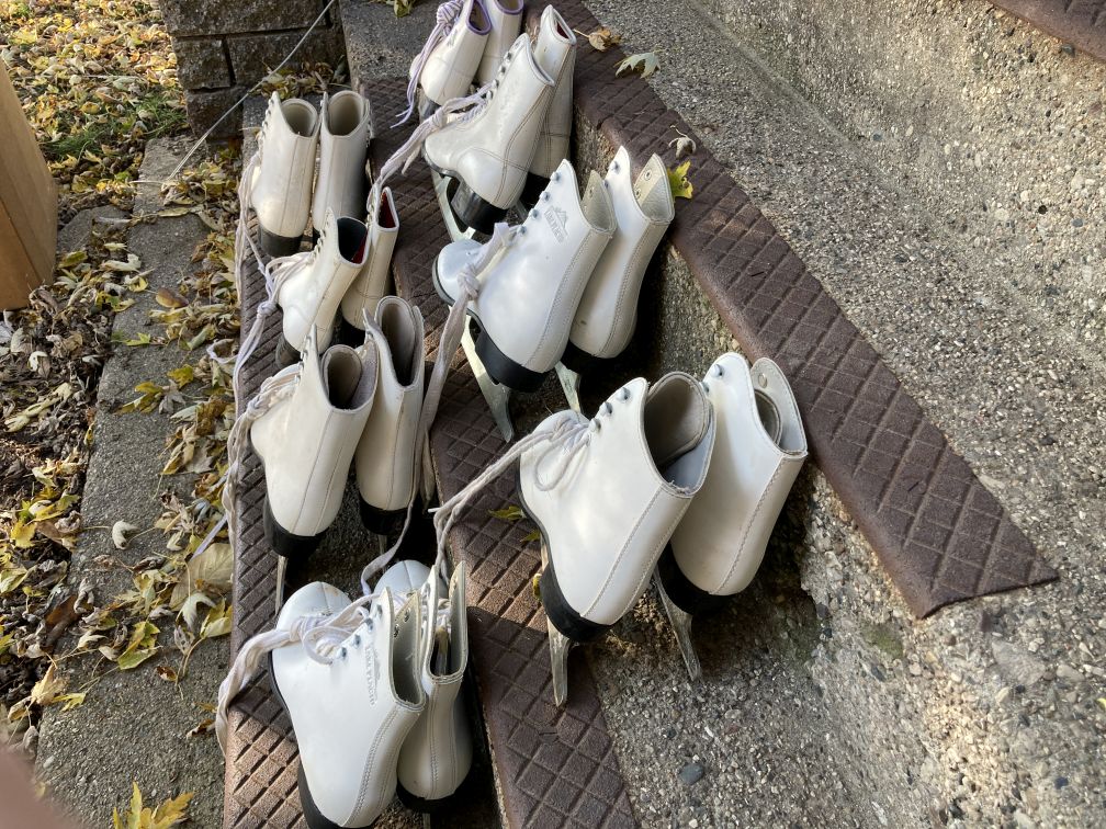 - This lot includes an assortment of 8 different sizes and brands of vintage girls’ white ice skates, all suitable for skating or as winter and holiday décor. This listing is for your choice of ONE PAIR.