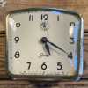 This is a beautiful vintage (NON-WORKING) wind up alarm clock from Lux, called the Genie. The clock is made of metal and features Arabic numerals on the display. The clock has a white enamel finish. Its dimensions are 4.25 inches in height and 4.75 inches in width. The clock is a mid-20th century piece from the 1960s and is an original item. It has a mechanical movement and needs to be wound up. The clock has an analog display and a metal frame. This clock is NON-WORKING and is being sold AS IS, for parts or repair.