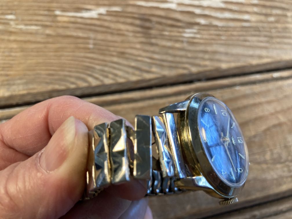 - Vintage men's wrist watch in unknown, UNTESTED working condition; will not wind; finish wear and tear throughout; plastic lens is scratched; stretch band has a few tweaked links near the case; selling AS IS, UNKNOWN WORKING CONDITION, for parts or repair. With a bit of repair and restoration, this vintage wrist watch would make a nice everyday timepiece for that special guy in your life.
