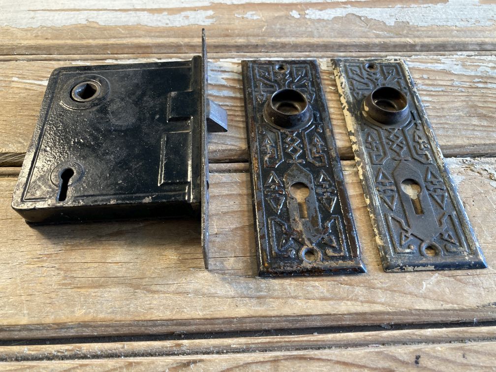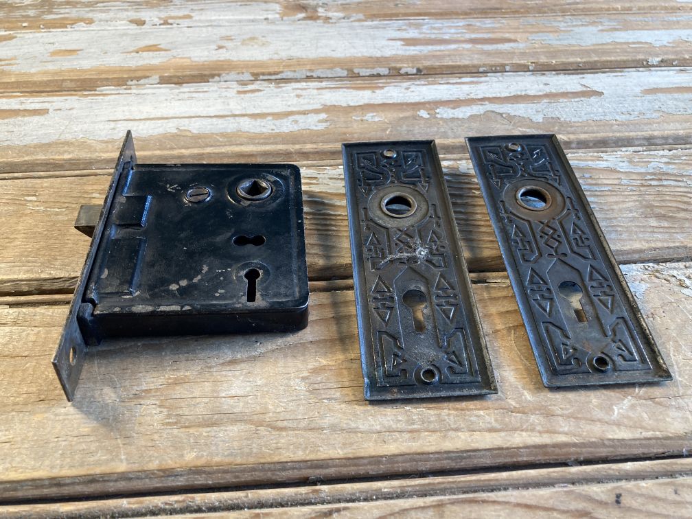 - Antique Door Hardware Mortise Lock and Fancy Back Plates Eastlake Style 1920s